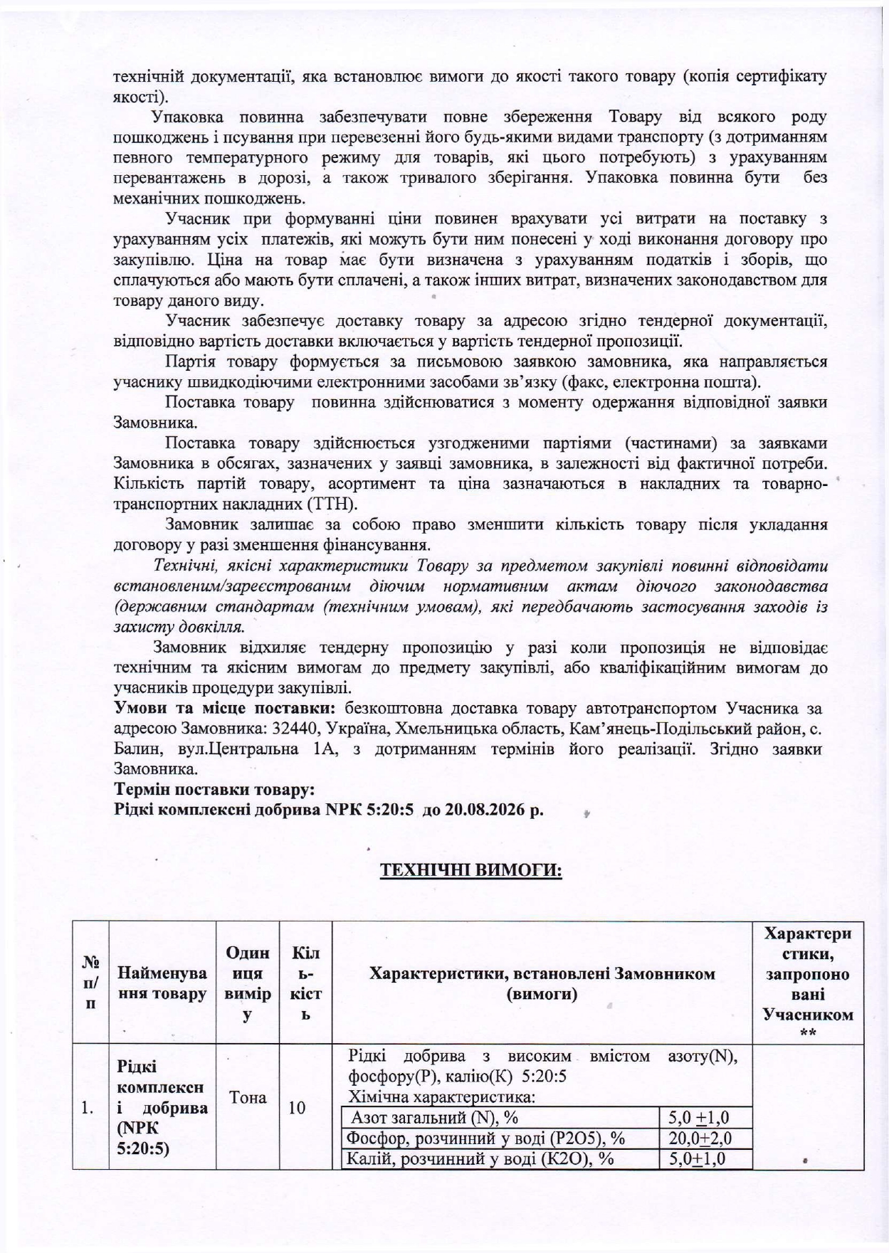 «Добрива різні» (Рідкі комплексні добрива КРК 5:20:5)